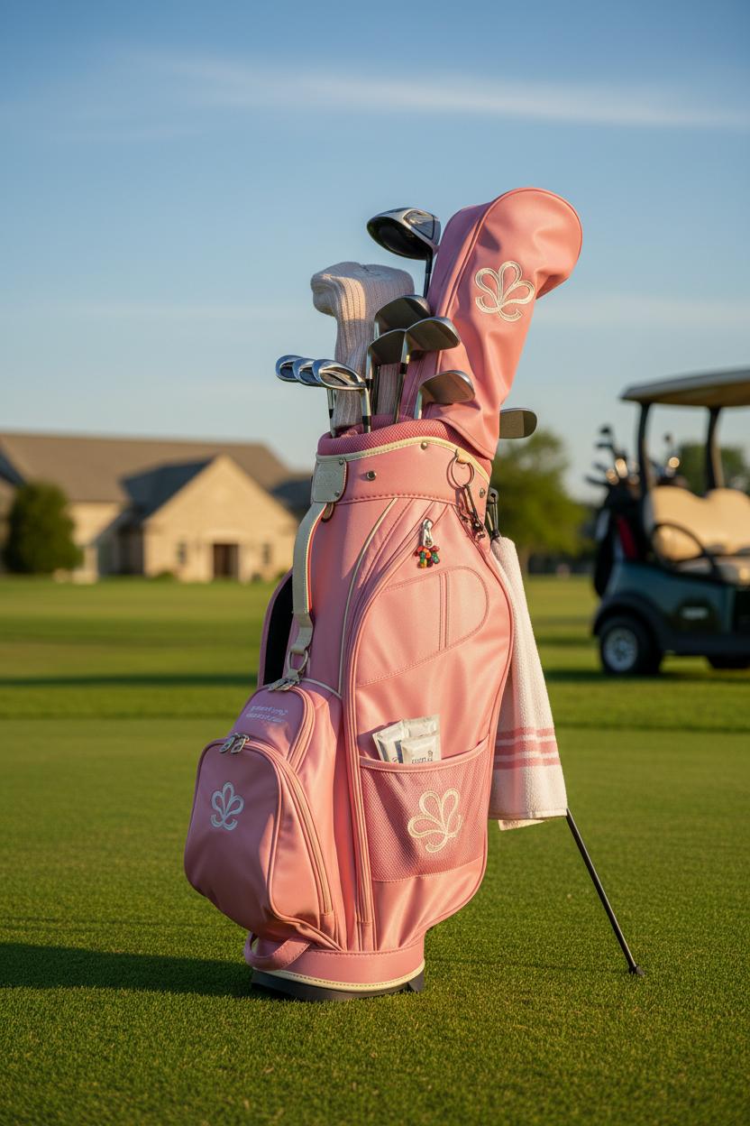 Prefer to walk? A ladies stand golf bag in pink keeps your look light and your swing freer. Seek a truly lightweight golf bag—around three to five pounds—with dual ergonomic straps, a cushioned hip pad, and auto-deploy legs so it stands at attention beside every shot. Pastel colorblocking, scalloped pocket edges, and subtle tonal logos feel feminine without veering frilly, while UV-resistant, colorfast materials protect that pretty shade from sun fade. Smart storage still counts: a waterproof valuables sleeve, quick-grab rangefinder pocket, and clip points for towels and charms. Finish the vibe with matching headcovers or a monogram tag, and you’ve turned a simple ladies golf bag into a full style moment that moves as beautifully as it looks.